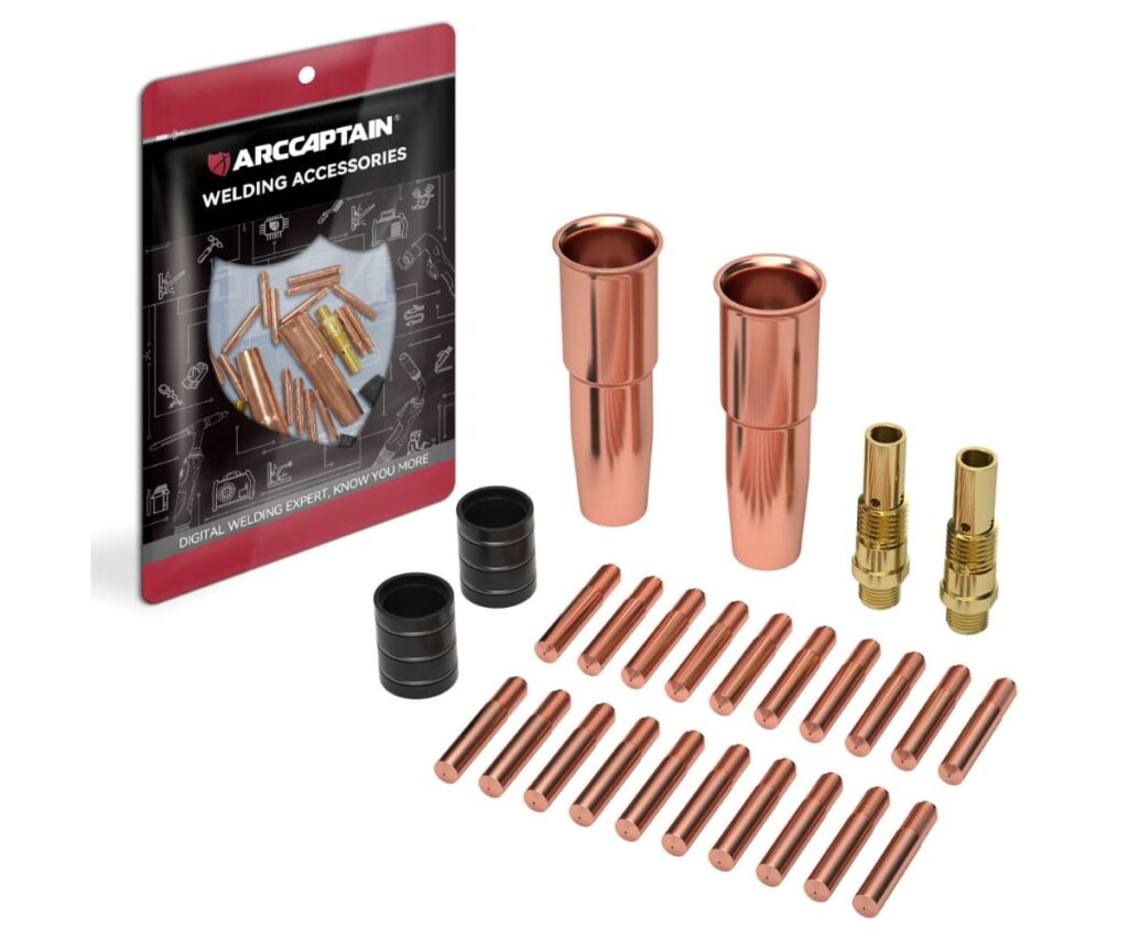Consumables like contact tips, nozzles, and diffusers can be replaced using threaded, slip‑on, cam‑lock (Eliminator), or drop‑in (Velocity) systems, depending on the gun series, which ensures quick swaps and minimal downtime.
